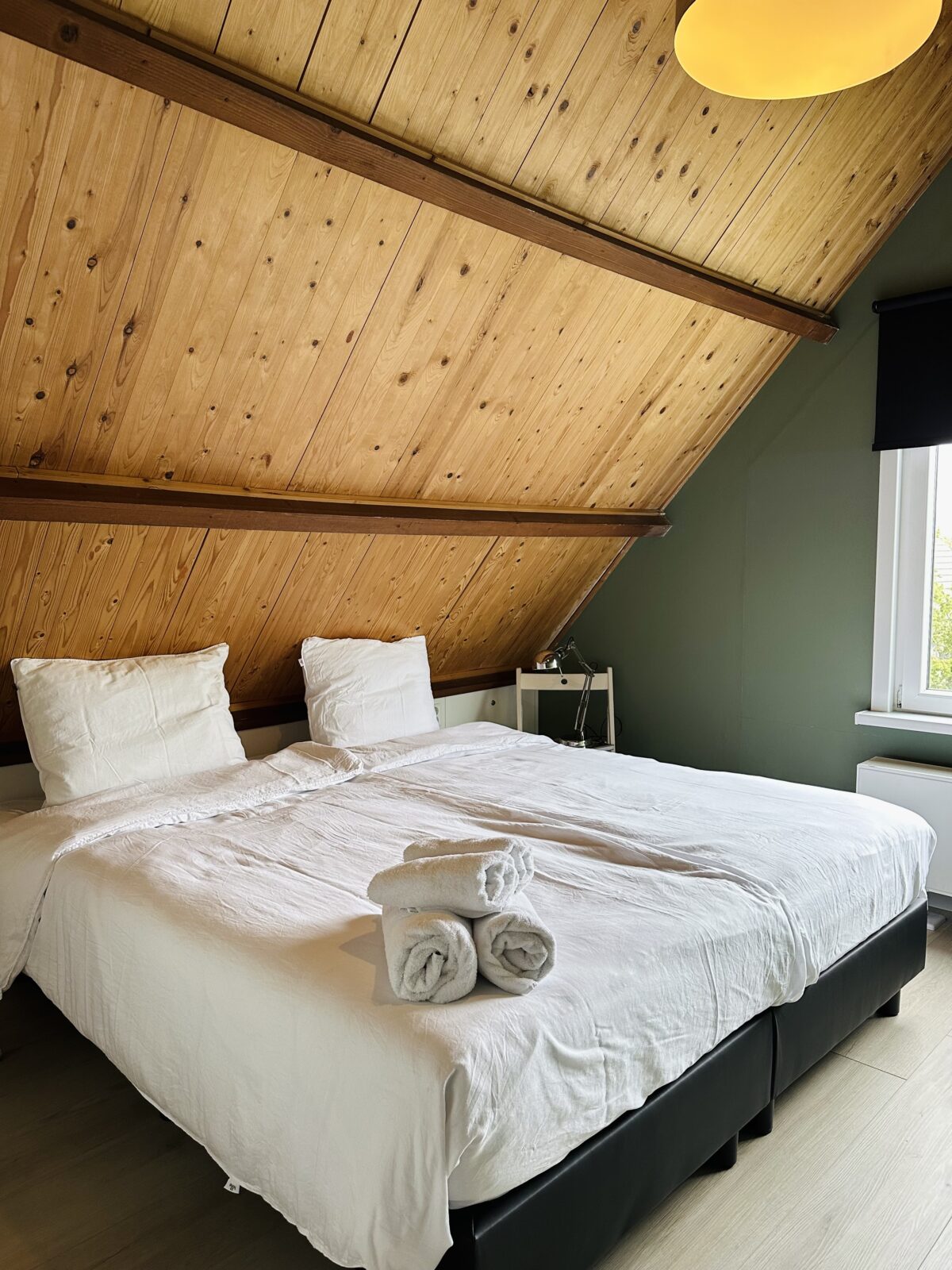 Boven bevinden zich twee slaapkamers. Eén slaapkamer is uitgerust met een comfortabel kingsizebed, terwijl de andere beschikt over twee eenpersoonsbedden. Alle slaapkamers zijn voorzien van voldoende opbergmogelijkheden.