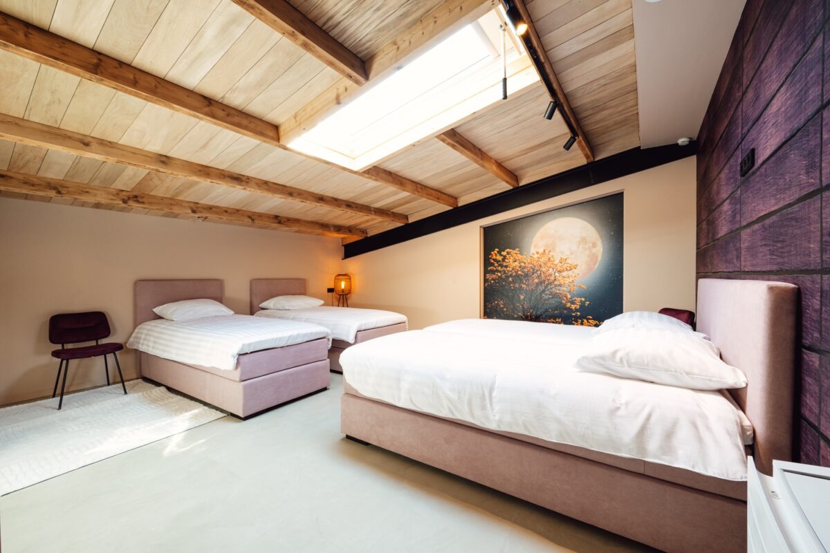 – Slaapkamer 3: 4 x luxe eenpersoons boxspring (met extra topper) (90×210)