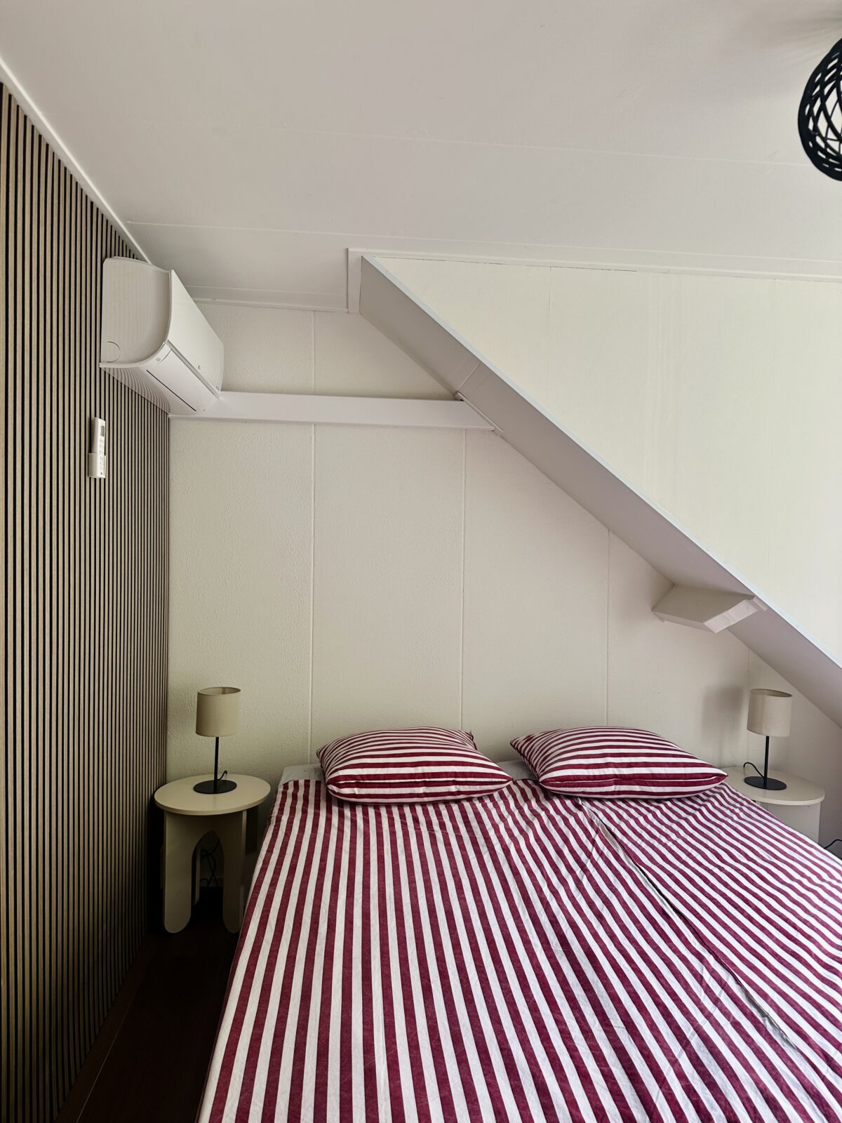 Op de bovenverdieping bevinden zich twee smaakvol ingerichte slaapkamers voorzien van airconditioning. Eén slaapkamer is uitgerust met een comfortabel tweepersoonsbed, terwijl de andere beschikt over twee eenpersoonsbedden. In elke kamer vind je voldoende opbergruimte. Bij aankomst zijn alle bedden netjes opgemaakt met beddengoed.
